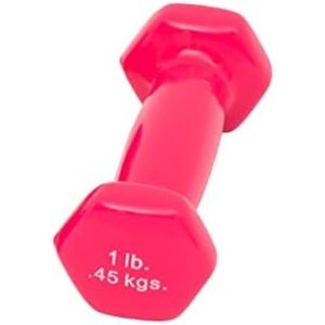 CanDo Color-Coded Vinyl Coated Iron Dumbbell, Pink, 1 Pound