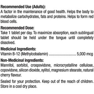 Prairie Naturals Sublingual B12 Methylcobalamin 5,000mcg & Folic Acid Tablet