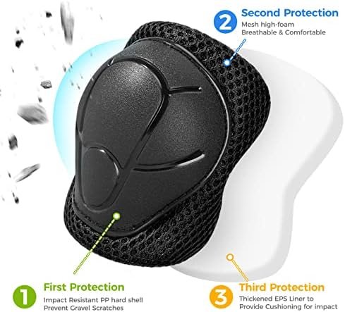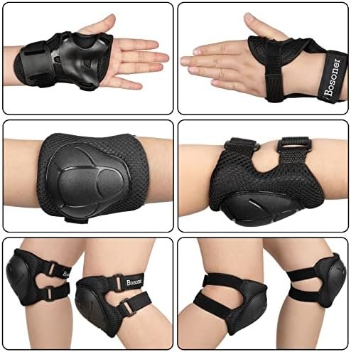 The BOSONER Kids’ Multi-Sport Pad Set with Wrist guards, Elbow Pads, and Knee Pads offers maximum protection, comfort, and mobility for biking, skateboarding, rollerblading, roller skating, and scooters. Each pad set includes two wrist guards, two elbow pads, and two knee pads for total multi-sport coverage.