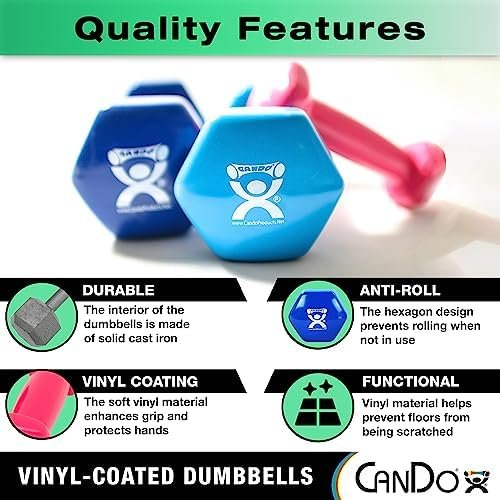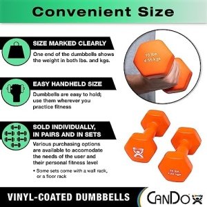 Vinyl coated, color-coded cast iron dumbbells are ideal for upper body exercises, or for physical therapy, weight training, and toning workouts. Vinyl coating gives weight a comfortable feel. Coated weight does not scratch flow. Each dumbbell is clearly marked in pounds and kilograms. Available individually, as pairs and in sets with or without a storage rack.