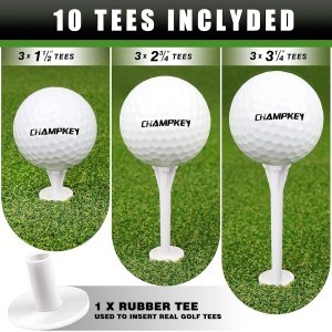 Package Includes: 1 * golf hitting mat . 1* rubber tee. 3 * 38mm plastic tees, 3 * 70mm plastic tees , 3 * 83mm plastic tees.