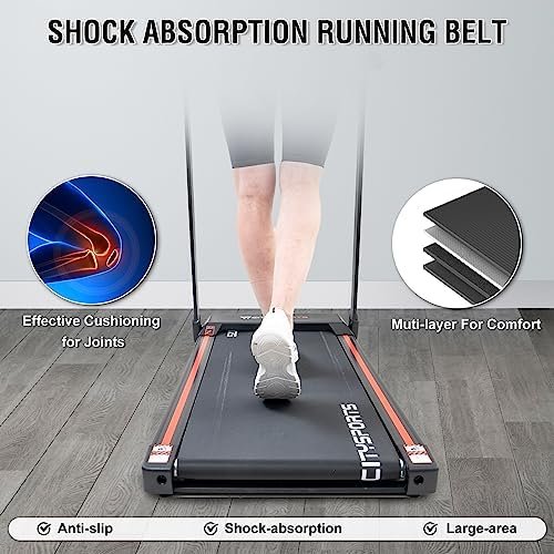 【Safe and Quiet Running Experience】The running belt of this treadmill is made of quality foam and PVC coating, the multi-layer cushioning protect your knees to the utmost extent. The sound insullation foam makes the training quiet and comfortable.