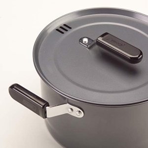 Designed for family camping adventures, the Coleman Family Cookware Set, 6-Piece, provides all the camping cookware needed to prepare hearty meals outdoors. This nesting cookware set includes a 10-inch frying pan that lets you fry eggs for breakfast, 2.4-quart saucepan with lid for heating up chili for lunch, and 6.9-quart stockpot/kettle to easily handle heating soups and boiling water. Cutout areas in the lids enable straining when making pasta dishes, while the textured grip handle provides a steady and comfortable hold. The included detachable handle fits both the frying pan and kettle, so you can move the camping cookware with comfort and ease. Built from commercial-grade steel, this set withstands high heat and also features riveted and plated handles and mounts for increased durability. The stainless steel cookware has nonstick surfaces that make this it quick and easy to clean when mealtime ends.