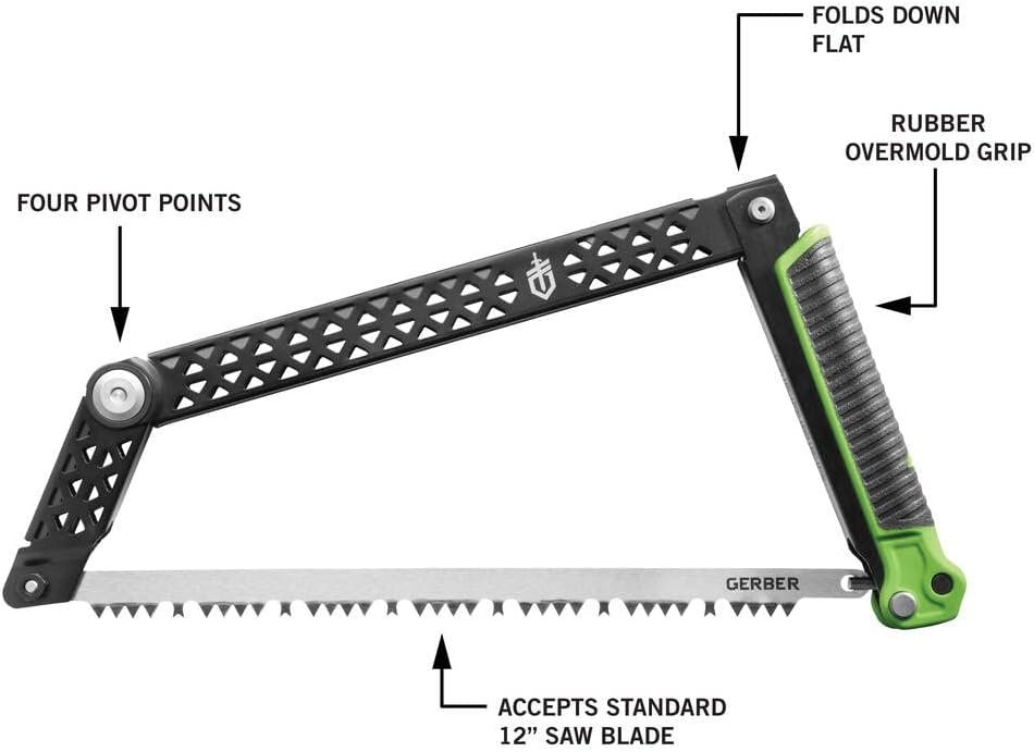 The Gerber Gear Freescape Camp Saw features an innovative design that allows the saw to fold up flat while remaining completely assembled and without threat of lost parts. It utilizes 4 pivot points to effectively cut larger diameter wood while using the full length of the blade. When folded up, the blade is protected and can be stowed safely in a gear kit or camp bin.