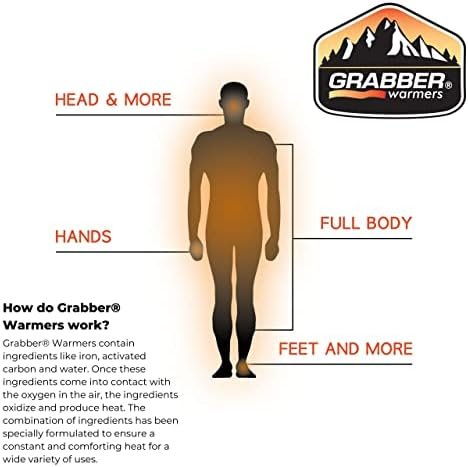 Conquer The Cold! Grabber Warmers are single use air-activated heat packs that provide everyday warmth and are ideal for keeping your body warm when the temperature gets cold. Grabber Hand Warmers are a non-toxic, odorless heat source using all-natural ingredients that are non-combustible. Specs & Details: • Quantity: 20 Hand Warmers (10 Pair). • Duration of Heat: Up to 7 hours of heat. • Activation Time: 15-30 minutes. • Average Temperature: 135 degrees Fahrenheit (57 degrees Celsius). • Max Temperature: 156 degrees Fahrenheit (69 degrees Celsius). • Ingredients: Iron, Water, Cellulose, Vermiculite, Activated Carbon, and Salt. • Storage: Keep in a cool place out of direct sunlight. Directions – Simply open the outer package and expose the packet to air. No shaking is necessary. For best results, use the hand warmers in an enclosed area with air such as a pocket or glove. Buy with Confidence – To ensure you receive genuine Grabber products when shopping online, please only purchase from authorized distributors or retailers or an Amazon listing that clearly states the product is sold and shipped directly by Amazon.com. Unauthorized sellers, such as private sellers (not commercial sellers) may offer outdated products or imitations not meeting Grabber quality standards. We want our customers to purchase our products with the confidence that they are getting genuine, quality Grabber products.