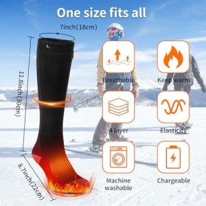 Heated Socks for Outdoor Sports- Whether for men or women, these heated socks can protect your feet from the cold and provide warmth when you are outdoors in winter. Battery-heated socks are perfect for camping, skiing, skating, snowboarding, fishing, hiking, dog walking, motorcycling, horseback riding, office or outdoor work and more. So, if you’re looking for a solution on how to keep your feet warm on a hunting rack, look no further!