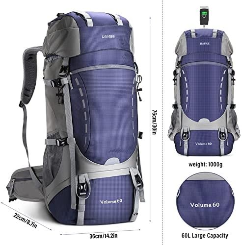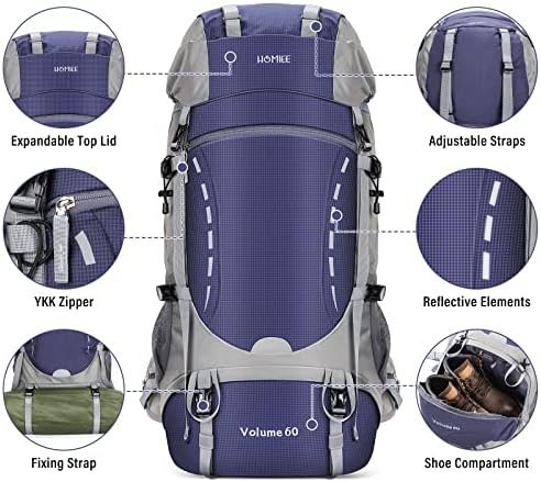 HOMIEE 50-60L Hiking Travel Camping Backpack for Outdoor, Waterproof Lightweight
