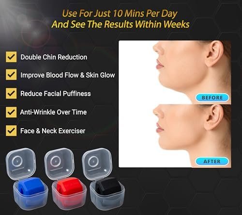 ✅ TOTAL KIT – The first thing people notice about you is your face. With 3 jaw exercisers, necklace, one gift box, instruction manual book to help you to better understand how to use these pack of double chin eliminators, and 3 clear containers where you can keep your face toning balls.