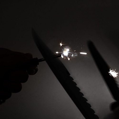 Nylon Sheath With Sharpener & Fire Starter: Durable heavy duty nylon sheath for easy and safe carry, packaged with a fire starter (black) and a sharpener (sliver)