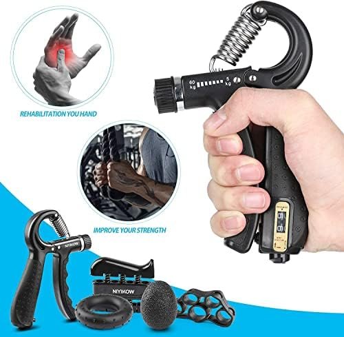 NIYIKOW Grip Strength Trainer Kit with Counter (5 Pack), Counting Grip Strength