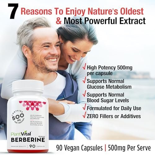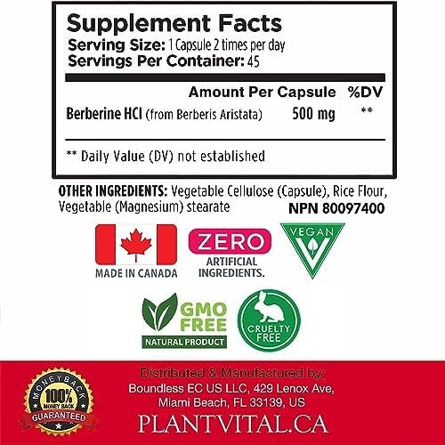 PlantVital Berberine 500mg Supplement -90 Capsules. Berberine Supplements