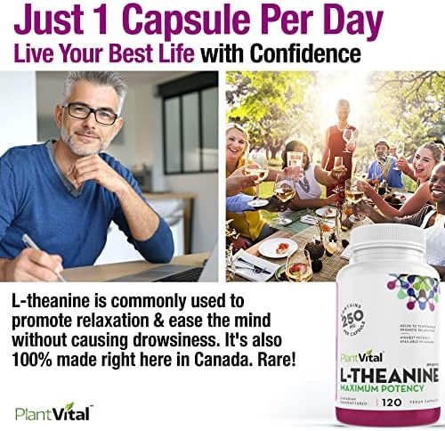PlantVital L-Theanine Capsules, HIGH POTENCY - L Theanine supplement promotes