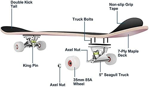 BELEEV Skateboards, 31 x 8 inch Complete Skateboard for Beginners, 7 Layer Canadian Maple