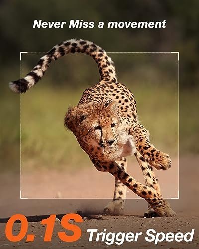 【Excellent Detecting Sensitivity & Continuous Loop Recording】The combination of 0.2s fast trigger speed, 3 continuous shots, and the adjustable motion-activated sensor avails to capture more exciting moments. This trail camera is created for the fast-paced action and highlight of scenes. And it can keep recording by overwriting the old photos and videos when the SD card is full, which is perfect for security purposes.
