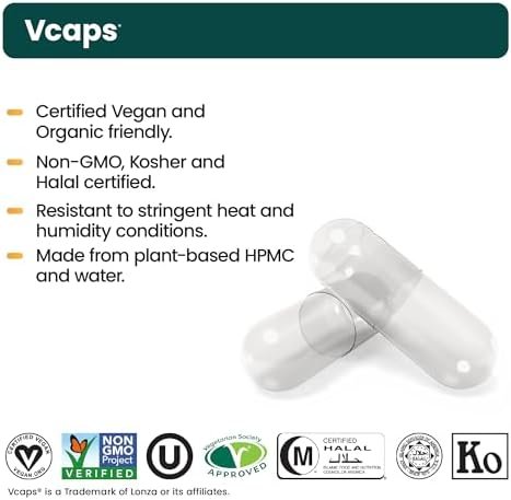 Vcaps are made of just two components: plant-based HPMC and water. They are a globally acceptable primary vegetarian capsule, and in Europe, they are suitable for use with organic ingredients. They are Non-GMO, Kosher and Halal certified.