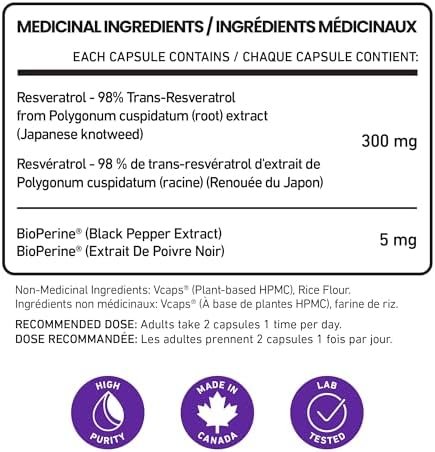 SETTING A STANDARD FOR RESVERATROL PURITY: Typically sourced from red grape skin and Japanese Knotweed, resveratrol has amazing health benefits. However purity has always been a major challenge for this super-nutrient; something most other resveratrol supplements don’t provide as it requires an extra step (and expense) in the manufacturing process. At 98% standardized trans resveratrol, our resveratrol supplement capsules provide some of the purest, most potent polyphenol nutrients available.
