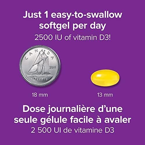 Vitamin D is the sunshine vitamin and is essential for healthy bones and teeth and the maintenance of good health. Extra Strength D3 2500 IU from Webber Naturals contains a higher daily dose of the preferred cholecalciferol form of vitamin D to help prevent vitamin D deficiency. When combined with adequate calcium intake, a healthy diet, and regular exercise, vitamin D can reduce the risk of developing osteoporosis.
