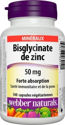 Zinc Bisglycinate from Webber Naturals is a highly absorbable form of zinc that is gentle on the stomach and does not rely on stomach acid for absorption. This one-per-day formula contains 50 mg of elemental zinc to support immune function and wound healing, and promote healthy connective tissue, skin, hair, and nails.Zinc is an essential mineral that plays a key role in more than 300 enzymatic reactions. It is needed for protein and DNA synthesis and plays a crucial role in normal growth and development. Zinc is also essential for detoxification processes, hormone production, reproductive health, energy metabolism, and muscle building.Zinc bisglycinate is a form of zinc that is exceptionally well absorbed without the need for stomach acid. Because the zinc is bound to glycine, it does not react with other minerals and food components in the digestive tract, ensuring more zinc is absorbed for use by the body.Zinc Bisglycinate from Webber Naturals is suitable for vegetarians and vegans and is non-GMO. It is a great choice for people with low stomach acid levels or absorption issues that increase the risk of zinc insufficiency.